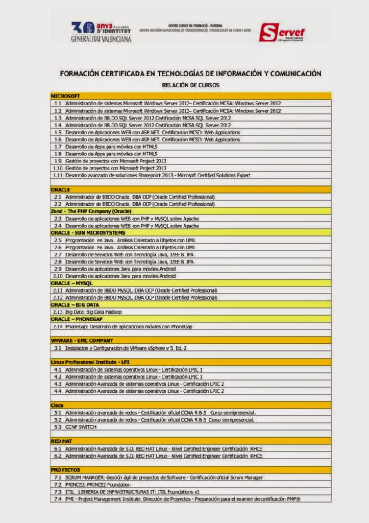 Termino el post haciendo mención dentro de los factores que inciden en la empleabilidad en el de los incentivos y oportunidades que ofrecen los poderes públicos para mejorar dicha empleabilidad. En concreto la mejora de competencias profesionales precisamente en TIC que actualmente ofrece la Generalitat Valenciana a través de su centro CSF-CRNFP PATERNA con una novedosa oferta de Formación Certificada en TIC: