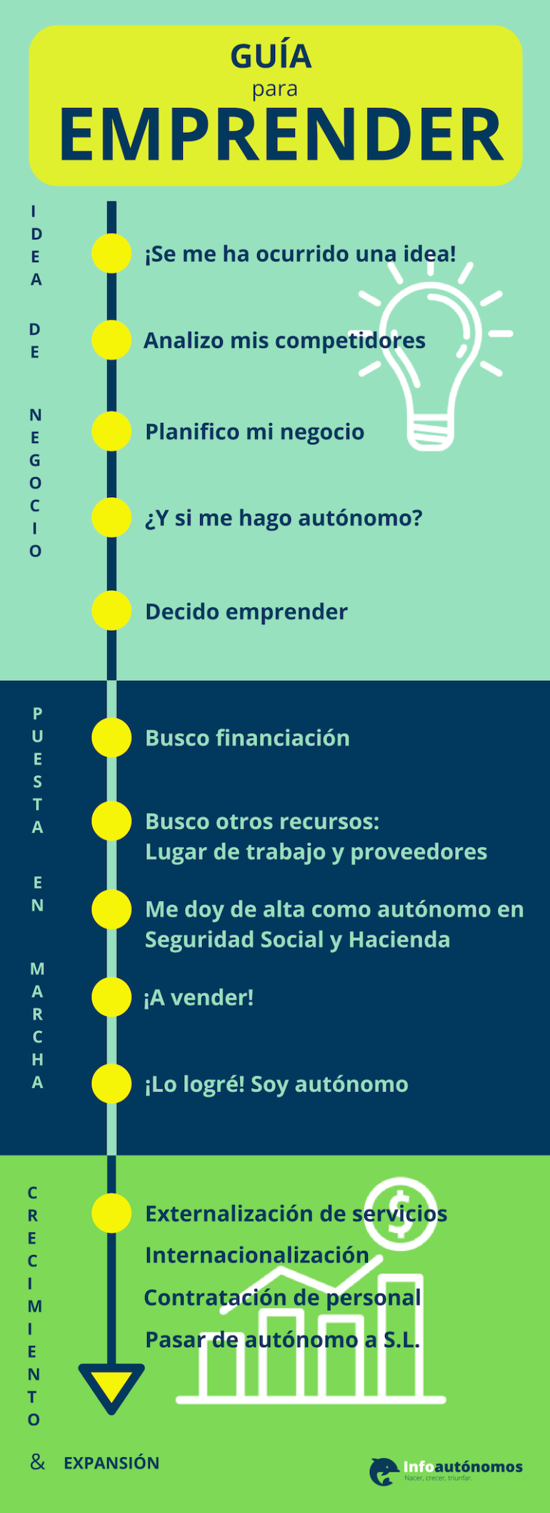 Una infografía sobre las Etapas de un proyecto de Emprendimiento. Vía Infoautónomos