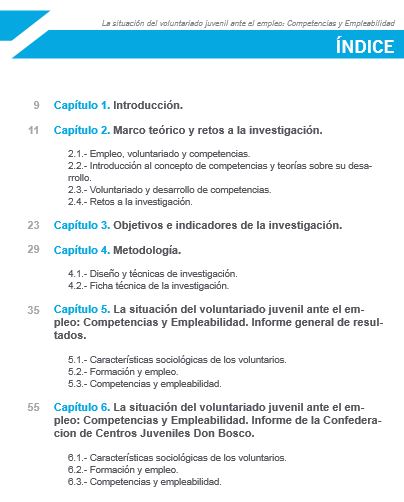 Desde hace años se viene hablando de la vinculación cada vez más evidente entre el aprendizaje y el desarrollo personal que supone el ejercicio del voluntariado, y la mejora de la empleabilidad de las personas voluntarias. Esto es más relevante todavía en el caso de los y las jóvenes voluntarios, debido a la falta de oportunidades y las dificultades que tienen para acceder a un empleo. La Confederación de Centros Juveniles Don Bosco, la Federación Didania y ASDE Scouts de España han puesto en común su amplia experiencia de trabajo con jóvenes voluntarios comprometidos en el Proyecto Reconoce, con un triple objetivo: poner en valor la experiencia de las personas voluntarias que trabajan en el ámbito del tiempo libre educativo; sensibilizar al tejido empresarial y a la sociedad en general sobre las competencias adquiridas por el voluntariado; y ayudar a la mejora de la empleabilidad de los y las jóvenes voluntarios. Este proyecto cuenta con el apoyo financiero del Programa de Ciudadanía Activa del Mecanismo Financiero del Espacio Económico Europeo 2009-2014, canalizado en España por la Plataforma de ONG de Acción social. En este ambicioso proyecto se incluye la elaboración de este Estudio sobre la situación del voluntariado juvenil ante el empleo: Competencias y Empleabilidad. El objeto del Estudio es conocer cuál es el perfil actual del voluntariado juvenil (características socio-demográficas, tipología y naturaleza de la acción del voluntariado juvenil), identificar las principales competencias profesionales adquiridas mediante la acción voluntaria, y también identificar cuál es la situación laboral de la juventud voluntarios y voluntarias. Este proyecto llega en un momento muy relevante. Por un lado el proceso legislativo que está viviendo el mundo del voluntariado en España, que contempla de forma explícita el derecho de las personas voluntarias a obtener reconocimiento por el valor social de su contribución y por las competencias, aptitudes y destrezas adquiridas como consecuencia del ejercicio de su labor de voluntariado. Y por otro lado, la juventud sufre de modo más intenso la precariedad y las condiciones laborales que ésta lleva aparejada, que se pueden resumir en un mayor desempleo, rotación en los puestos de trabajo, el empleo fraudulento de la contratación laboral, o mayor presencia en la economía sumergida.