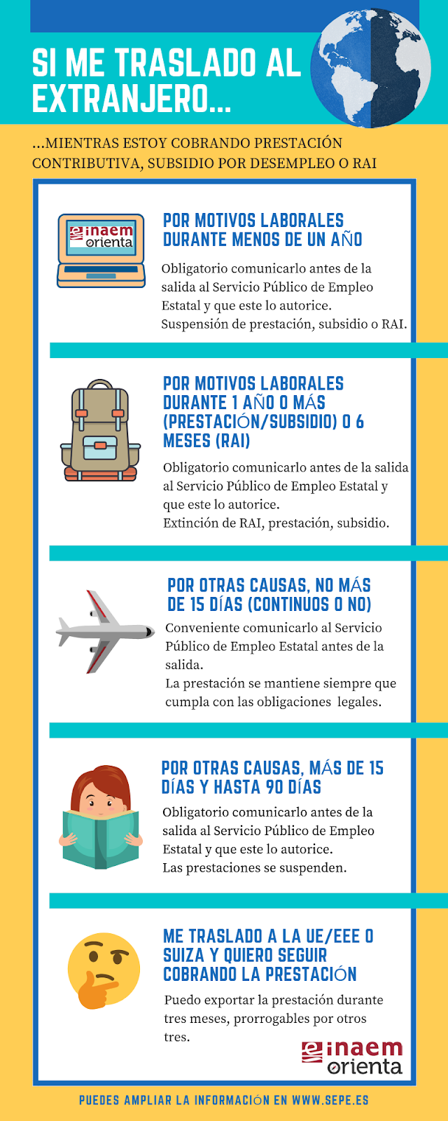 En este último caso, resulta conveniente que comuniques a tu oficina de empleo la salida antes de producirse. Asimismo, el primer día hábil siguiente al de tu regreso deberás presentarte en dicha oficina.