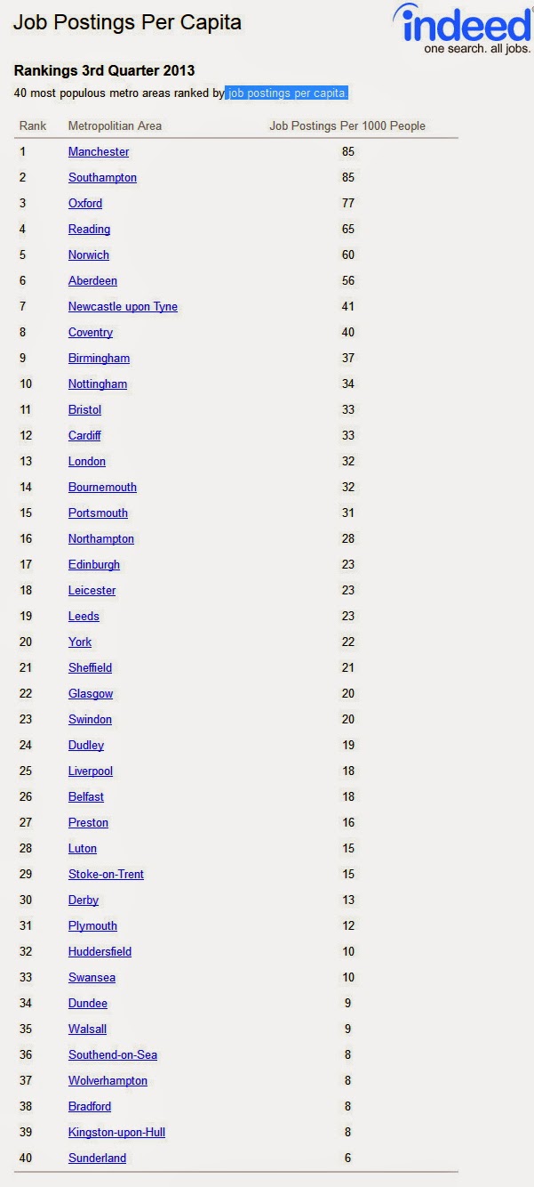 Pero para hilar más fino, fundamental este articulo donde podréis descubrir las zonas del Reino Unido con más puestos de trabajo ofertados por desempleado, así como las ofertas de empleo per capita: